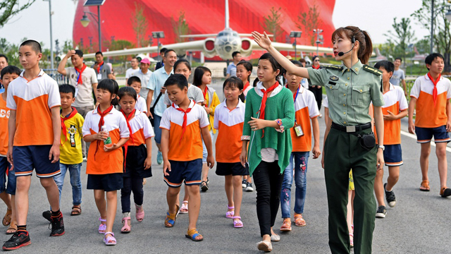 江西省宜丰县澄塘中心小学的留守儿童参观南昌军事装备展示中心,让孩子们了解国防科技知识,接受爱国主义教育。